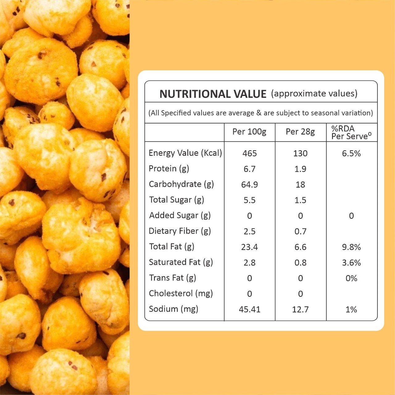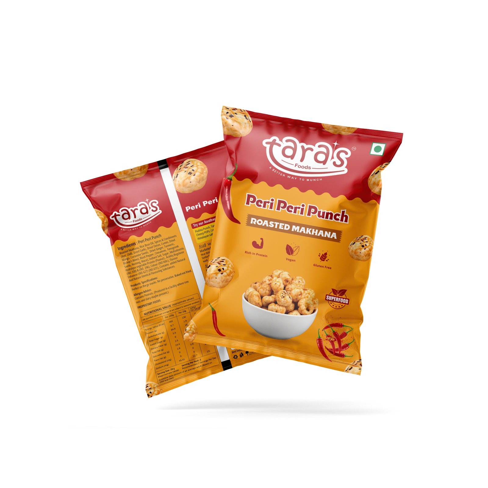 Peri Peri Punch Roasted Makhana brings the heat with bold peri peri seasoning while keeping it healthy. Baked, not fried, these crunchy superfood snacks are rich in protein, vegan, gluten-free, and free from preservatives. Ideal for on-the-go snacking or movie nights, they’re delicious straight from the pack or lightly warmed for extra crunch.