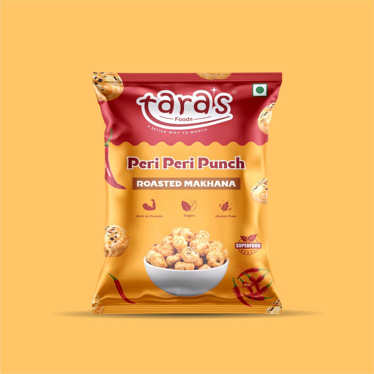 Fiery peri peri spices on crunchy roasted makhana a perfect guilt-free snack for spice lovers.