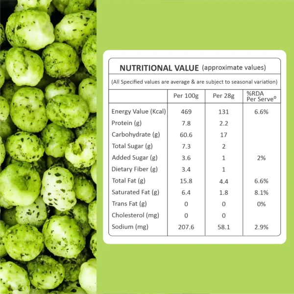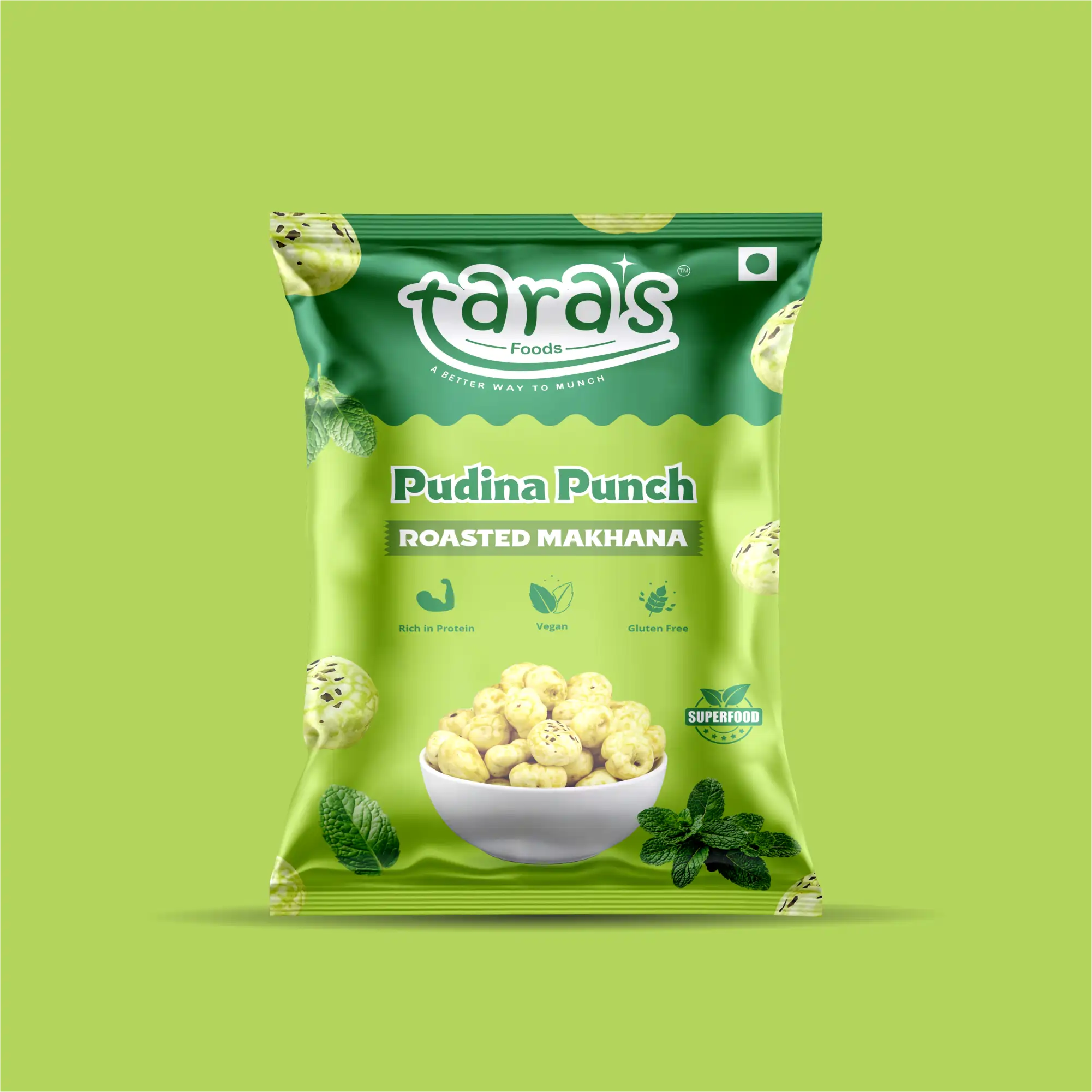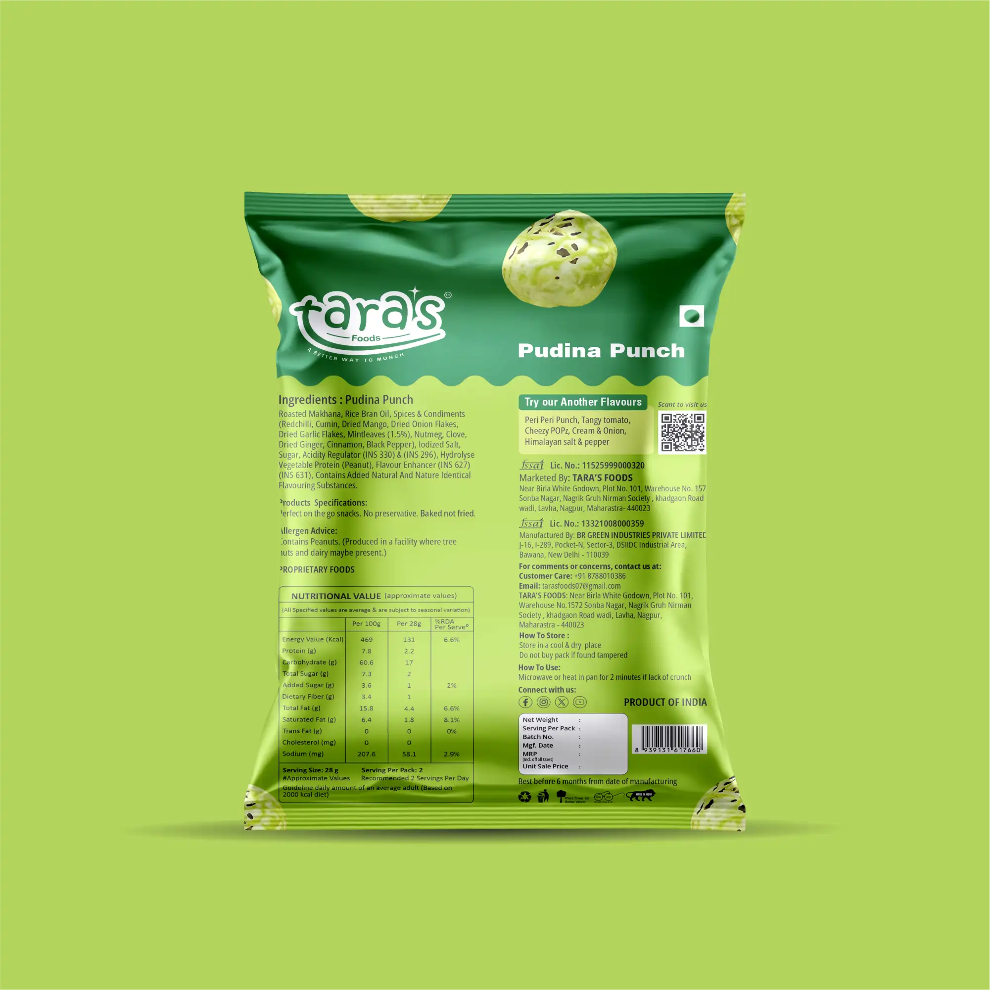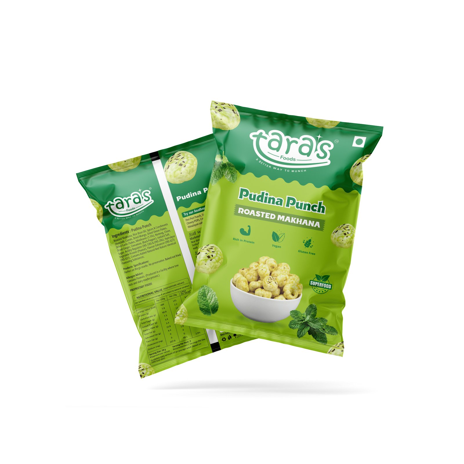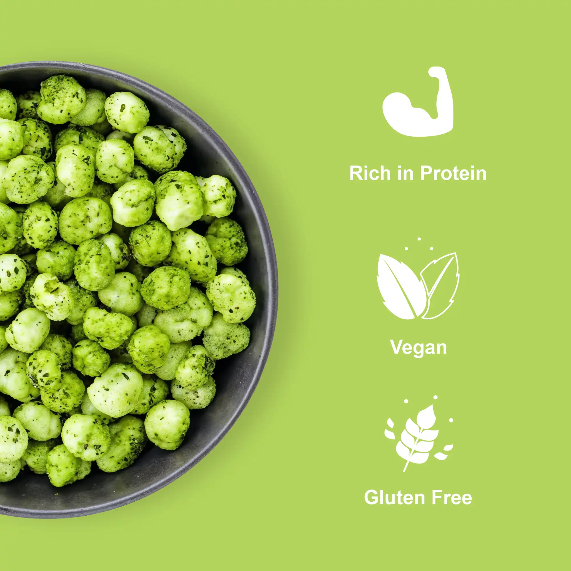 Refreshing mint-flavoured roasted makhana with a spicy twist light, crunchy, and wholesome.